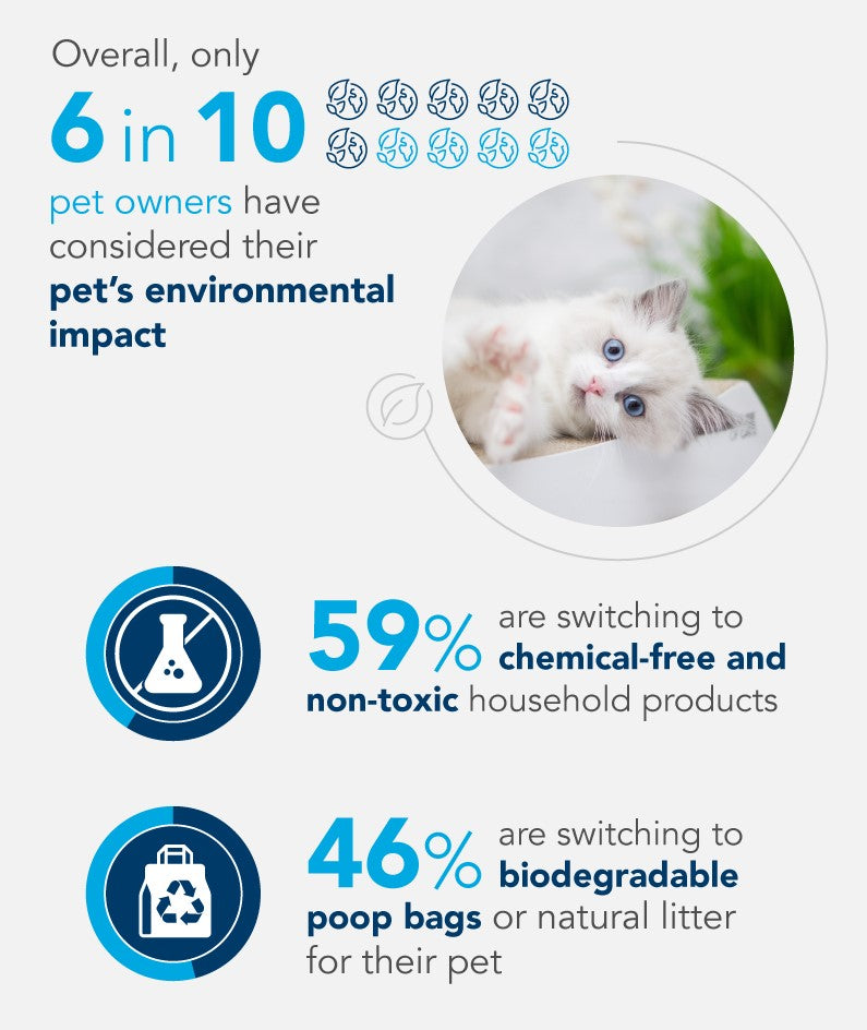 Thankfully, the survey also reveals that a whopping 94% of respondents made an effort to live more sustainably than they did a year ago. Nearly one in five even claim that they’ve “radically transformed” themselves and their sustainability habits over the past year. For almost half of the polled pet owners, that includes seeking out more environmentally friendly foods and products for their furry friends and swapping to biodegradable poop bag or an all-natural cat litter.